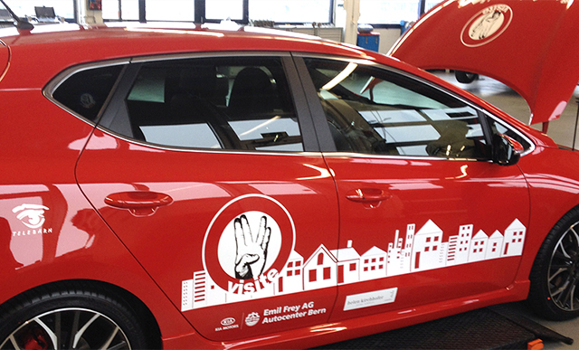 durch die beschriftung des fahrzeuges schafft man eine rollende werbefläche, die – unfallfreies fahren vorausgesetzt – jahrelang bestehen bleibt. insofern ist dies sicher eine gute investition und erzielt auch bei kundenbesuchen eine tolle wirkung. diese gefährte habe ich für era immobilien gestaltet.