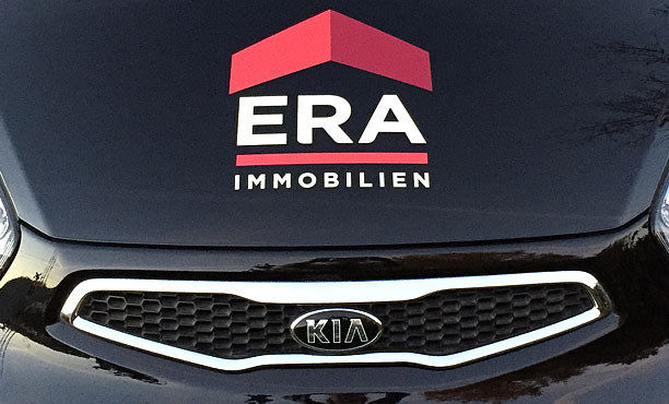 durch die beschriftung des fahrzeuges schafft man eine rollende werbefläche, die – unfallfreies fahren vorausgesetzt – jahrelang bestehen bleibt. insofern ist dies sicher eine gute investition und erzielt auch bei kundenbesuchen eine tolle wirkung. diese gefährte habe ich für era immobilien gestaltet.