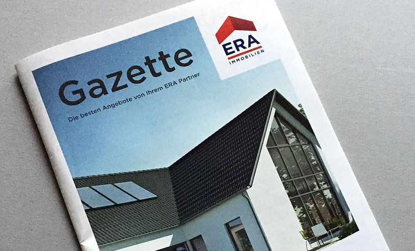 im zuge des neuen corporate designs der era immobilien habe ich auch die altbewährte gazette – eine broschüre im format a5 – aufgefrischt.