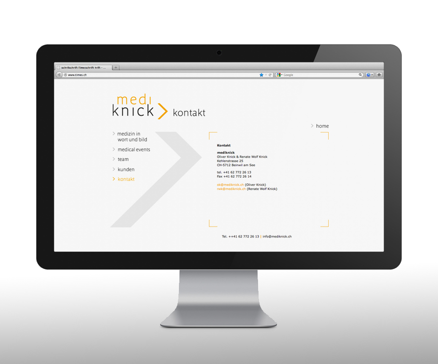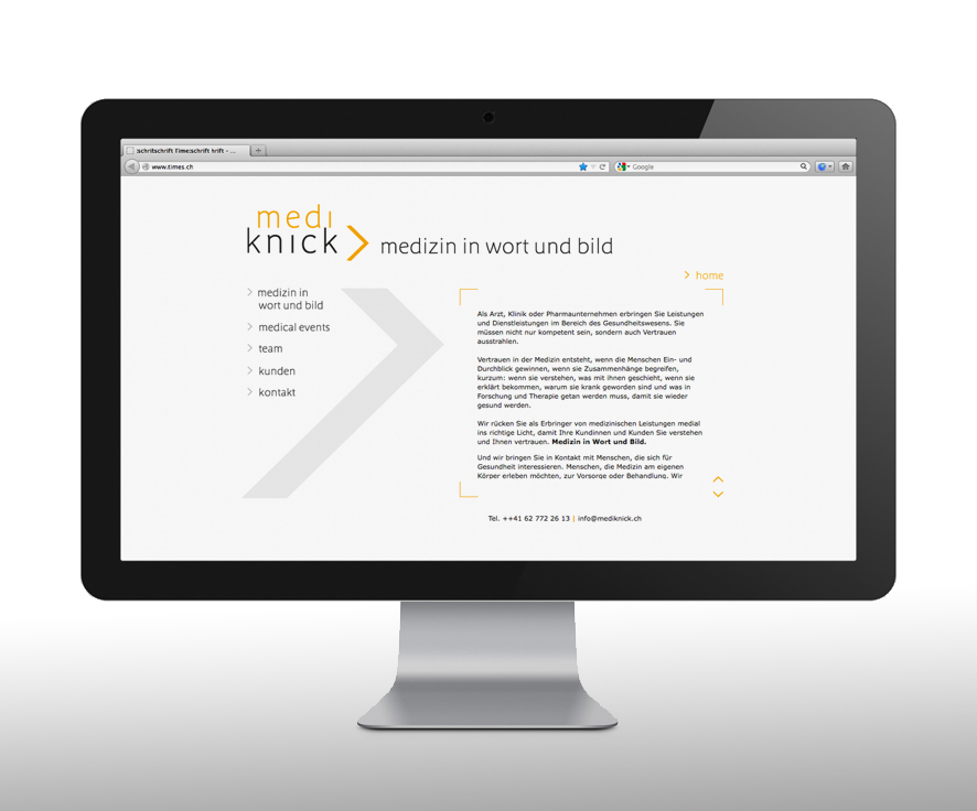 «mediknick» macht marketing im medizinischen bereich. um dieser neuen firma ein gesicht zu verleihen, wurde ein neues corporate design erschaffen. dafür habe ich logo, briefschaften und website in einheitlichem look gestaltet und mit dem unverkennbaren «knick» versehen. so ist ein unverwechselbares erscheinungsbild entstanden.