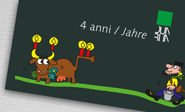 alle jahre wieder! auch dieses jahr wurde – zum 4. geburtstag von «dun bun» aus lugano – eine entsprechende geburtstagskarte umgesetzt. die visitenkarte mit lageplan auf der rückseite ist perforiert und kann abgetrennt und an freunde verteilt werden.