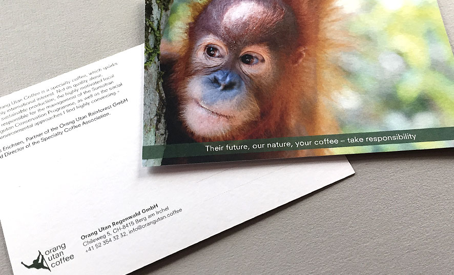 orang utan coffee | postkarten Geschrieben von Migi Keck am 1. November 2017. Veröffentlicht in corporate, neue designs, print. postkarten für orang utan coffee.