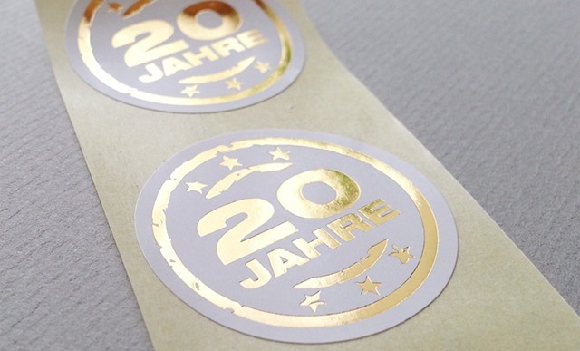 excellent personaldienstleistungen zürich feiert dieses jahr ihr 20-jähriges bestehen. grund genug für ein solches jubiläum ein signet zu kreieren, welches in den nächsten monaten verwendet werden kann auf den geschäftsdrucksachen, in der werbung und auf der website. die sticker wurden in goldener farbe gedruckt und wirken schlicht glänzend!