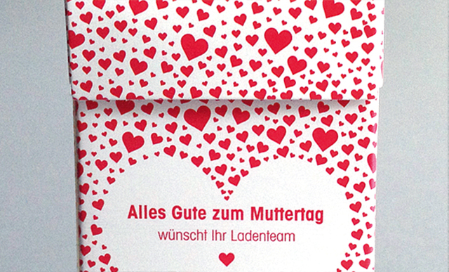 anlässlich des letzten muttertages habe ich im auftrag von halter bonbons eine verpackung mit herz erstellt! diese klick-boxen, gefüllt mit zuckerfreien bonbons, wurden dann in allen volg filialen der schweiz verteilt. aufgrund der kleinen dimensionen der box beschränkte ich mich beim design auf eine einfache sprache: diese bonbons kommen von herzen (mit liebe hergestellt von halter).